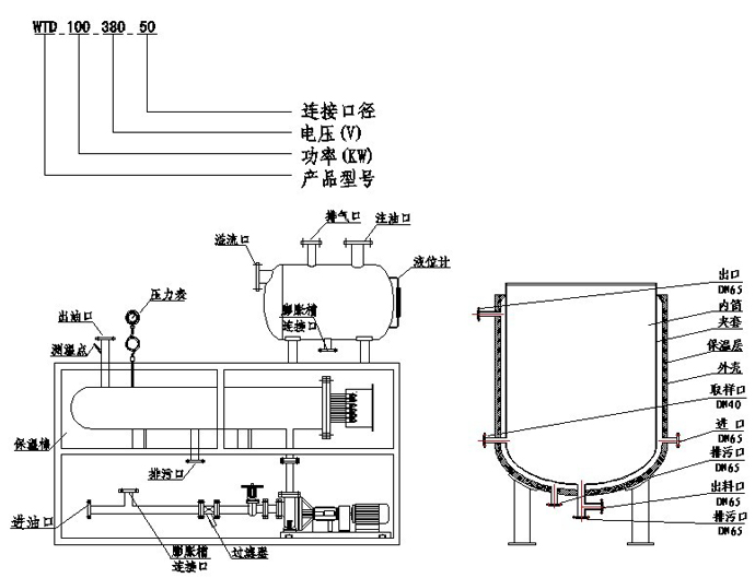 電加熱導熱油系統由防爆電加熱器、有機熱載體爐、熱油泵、膨脹槽等組合成一個撬塊,用戶只僅需接入電源、介質的進出口管道及一些電氣接口即可使用。